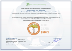 Op 1 december 2022 behaalden de locaties Leonardushof, Moerweide en Wiekendael het bronzen Milieuthermometer Zorg certificaat. Dit certificaat is 3 jaar geldig. Met trots kunnen we melden dat het certificaat op 1 december 2025 opnieuw is toegekend. Hiermee tonen deze locaties aan dat zij nog steeds de basis bezitten voor een duurzame locatie.