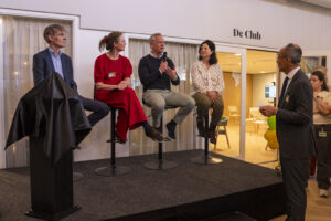 Aanwezigen maakten kennis met VanThuisUit en waarom dit concept voorziet in een behoefte. Het belang van goede samenwerking bij het langer thuis wonen van ouderen werd door Heleen van Nispen (raad van bestuur Groenhuysen), Christ-Jan Danen (raad van bestuur TWB), Jan-Kees van Wijnen (raad van bestuur tanteLouise) en Joyce Oomen-Beeris (manager regioregie West-Brabant CZ) onderstreept. Evenals het belang van opschalen van vernieuwende concepten. TanteLouise is initiatiefnemer van VanThuisUit, in samenwerking met het CZ Zorgkantoor.